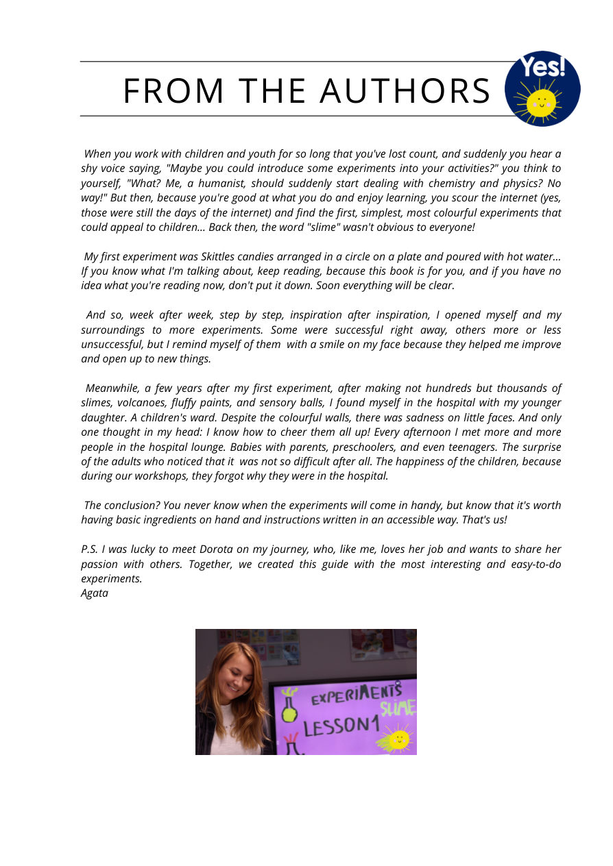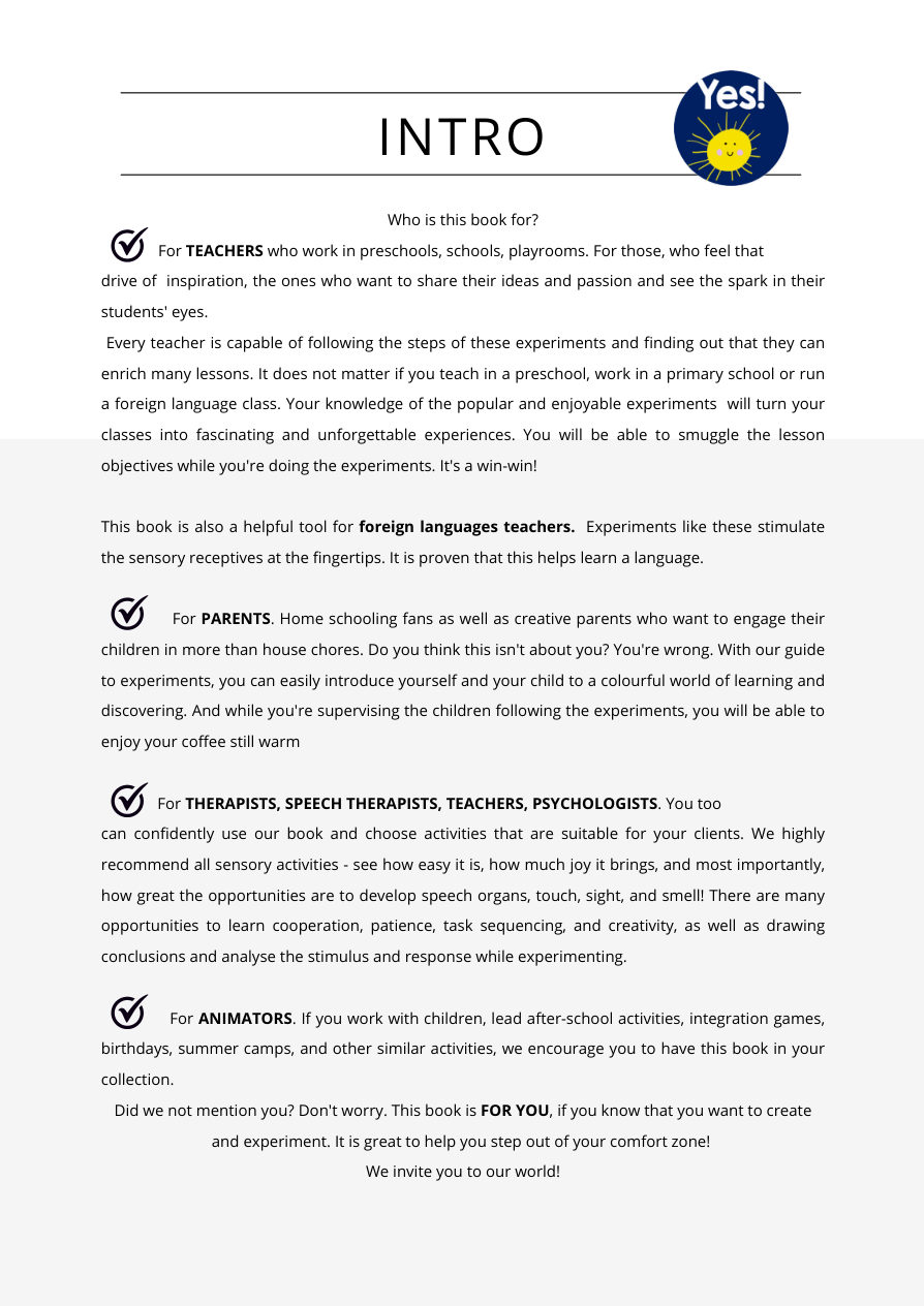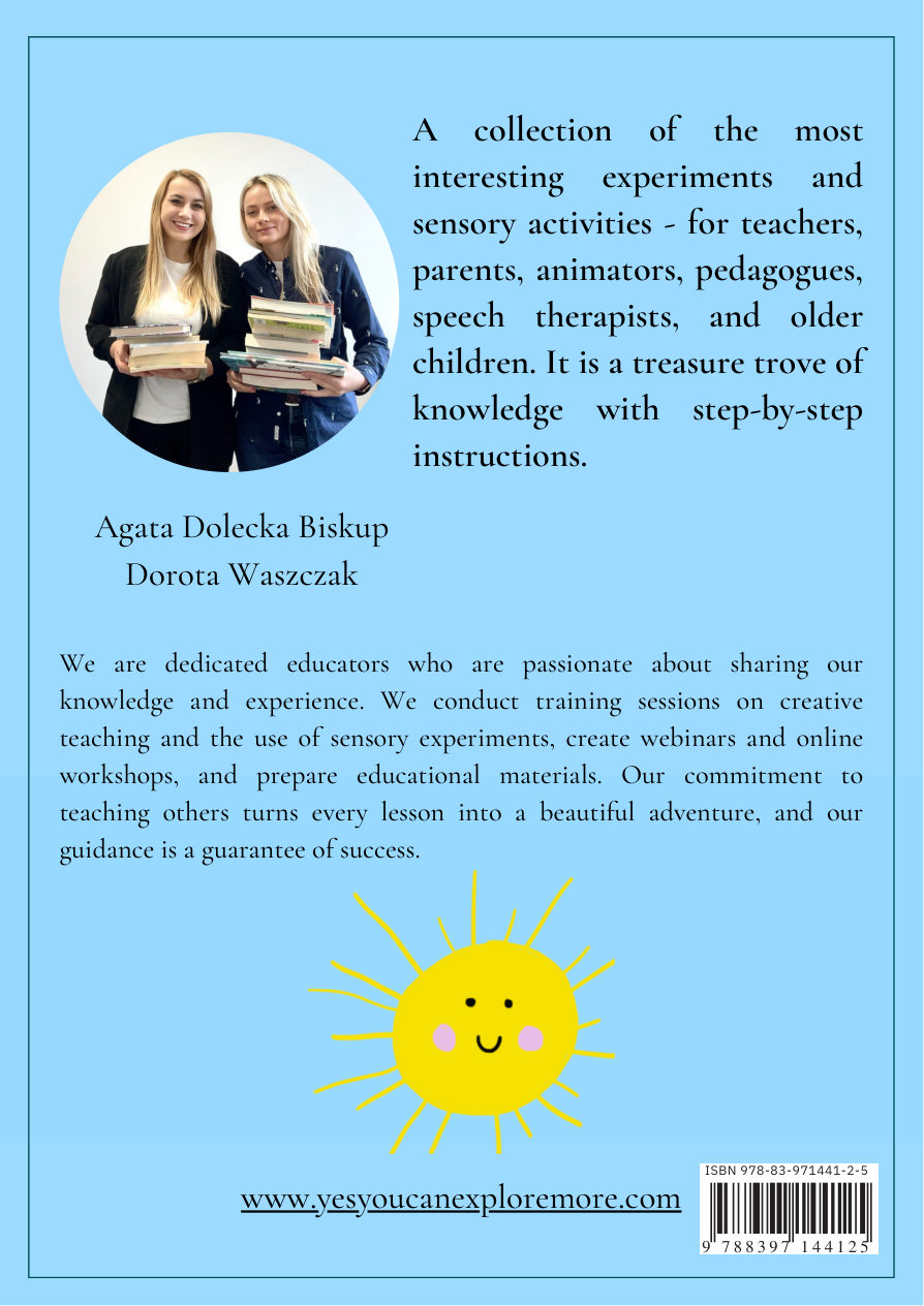 “The Best Experiments for Kids” A collection of the most interesting experiments and sensory activities – for teachers, parents, animators, pedagogues, speech therapists, and older children. It is a treasure trove of knowledge with step-by-step instructions. Many experiments include a QR code that links certain pages of the book to the appropriate videos on YouTube. The excited faces of hundreds of our students confirm our belief that we are going in the right direction.